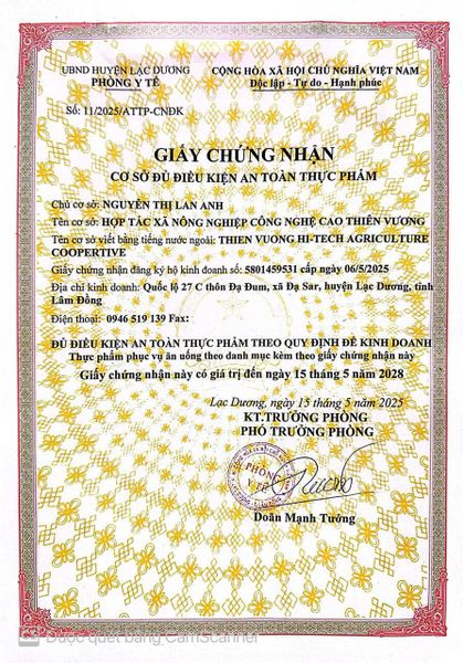 GIẤY CHỨNG NHẬN CƠ SỞ ATTP