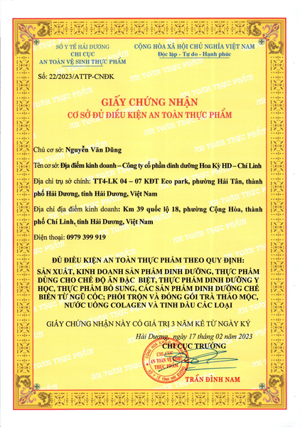 GIẤY CHỨNG NHẬN CƠ SỞ ĐÙ ĐIỀU KIỆN AN TOÀN THỰC PHẨM