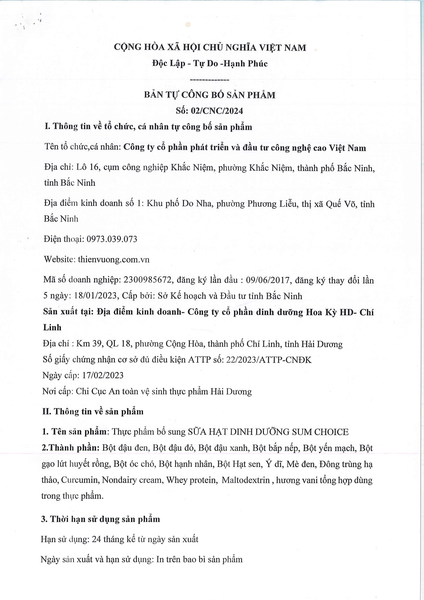 - Tên sản phẩm: Sữa hạt dinh dưỡng Sumchoice